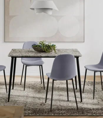 Our dining set is not just about looks; it’s built to last. The sturdy metal legs and resilient marble veneer table top ensure that your investment will provide years of dining pleasure.