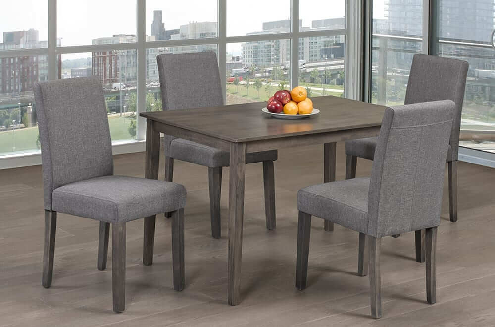 Upgrade your dining space with our Modern Dining Set, which marries the enduring charm of traditional design with a modern twist. The grey-finished solid wood table not only exudes visual appeal but also guarantees lasting durability, ensuring years of family gatherings and memorable meals.