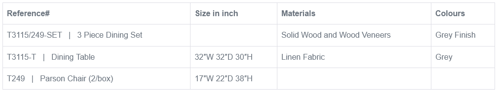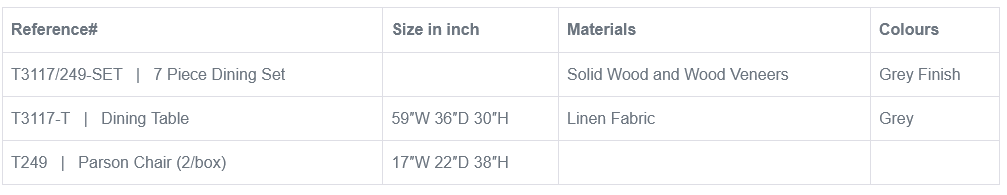 3/5/7 piece Dining Set T3115 /3116 /3117 – 249
