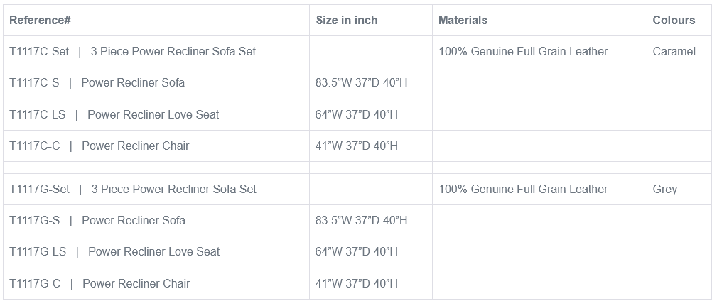 3 Piece Power Recliner Sofa Set – T1117C-Set