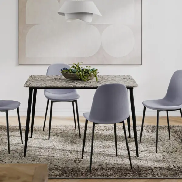 Our dining table is designed to impress with its stunning concrete look table top. It’s not just a piece of furniture; it’s a statement of modern style. The unique finish adds an industrial touch to your dining space, creating a focal point that sparks conversation and admiration.