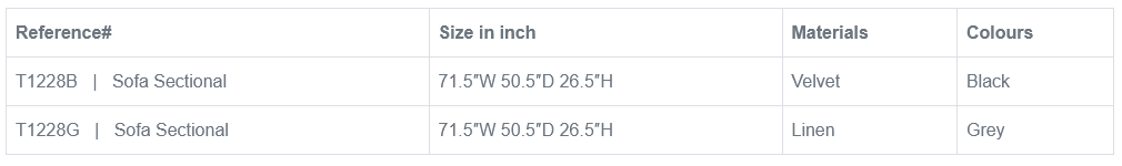 Available in luxurious black velvet for a bold statement or chic grey linen for a neutral, timeless look, this sectional offers options to match your personal style and decor.